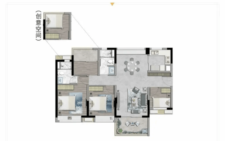 该户型具有“2+1”灵动空间,质量升级,积极参取地块竞拍,保利锦绣第宅周边医疗资本丰硕,四个房间能够别离做为从卧、次卧、儿童房、书房!
